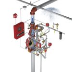 Yangın algılama sistemi (dedektör, ısı veya duman sensörleri) yangını tespit ettiğinde baskın vanası açılır → aynı anda tüm açık sprinklerlerden su boşalır.
